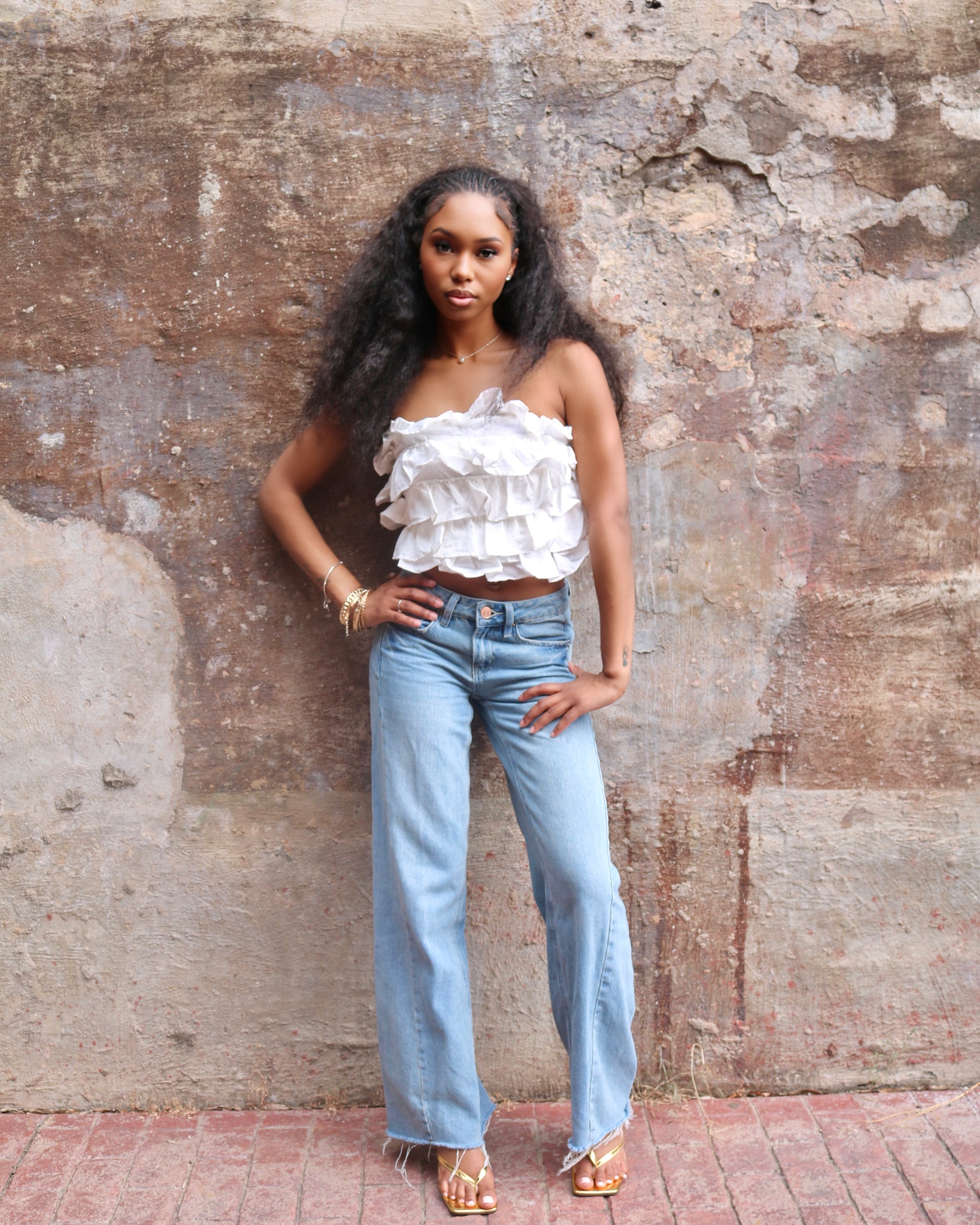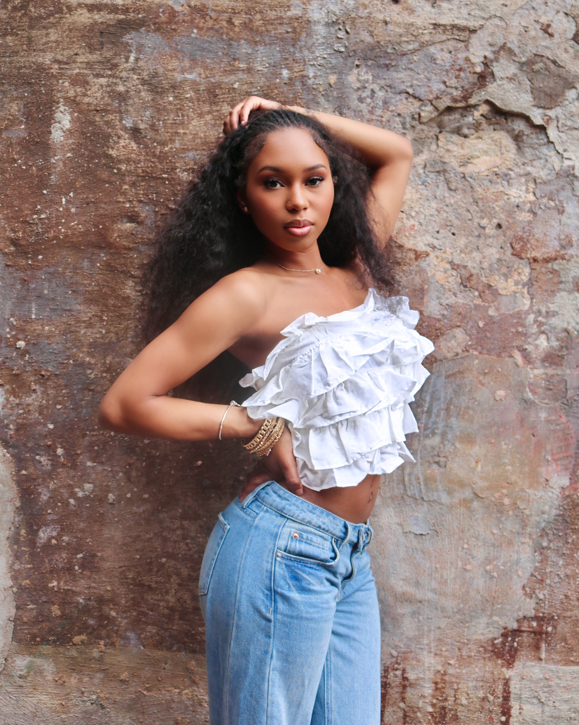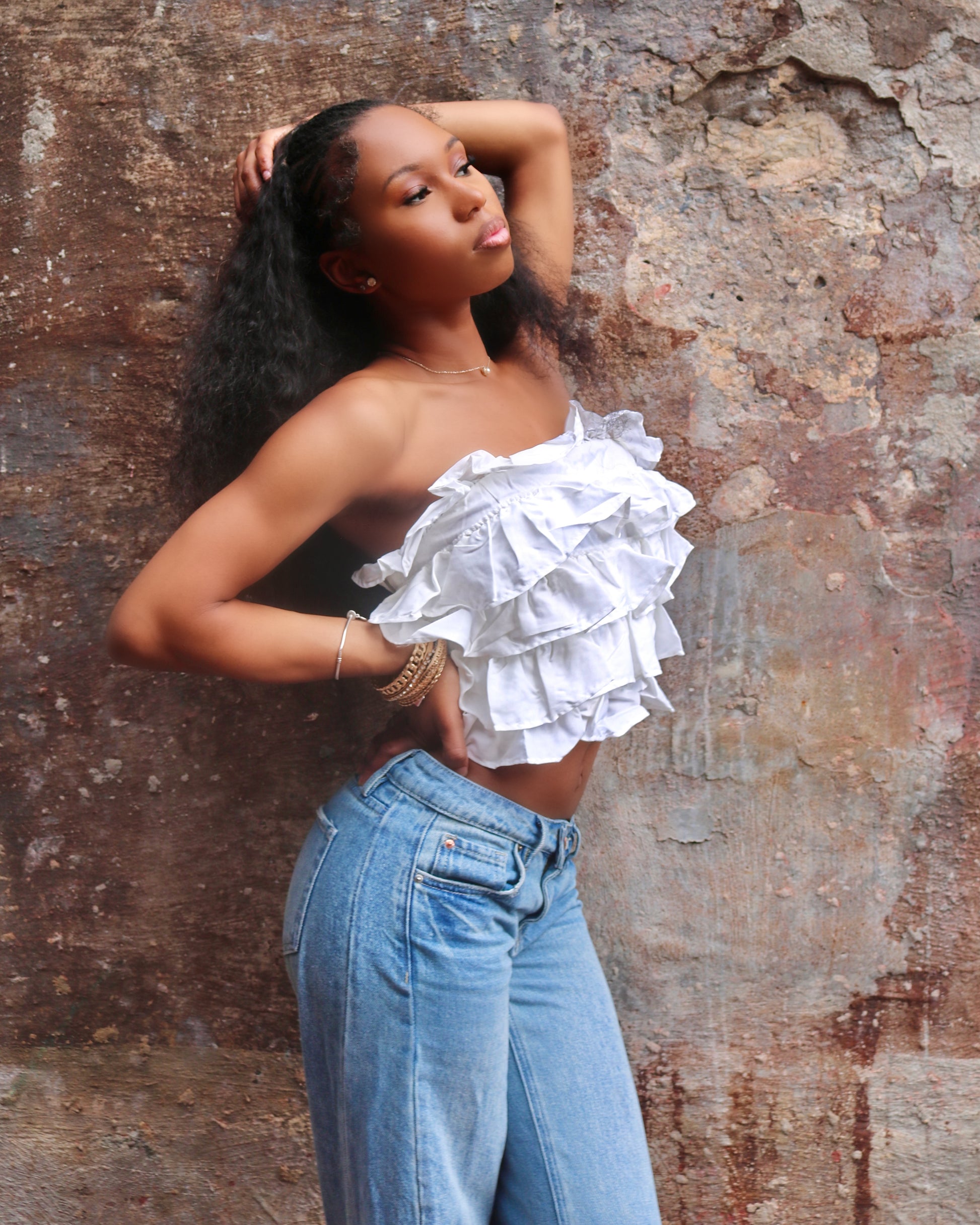 MULTI LAYERED RUFFLE CROPPED TUBE TOP